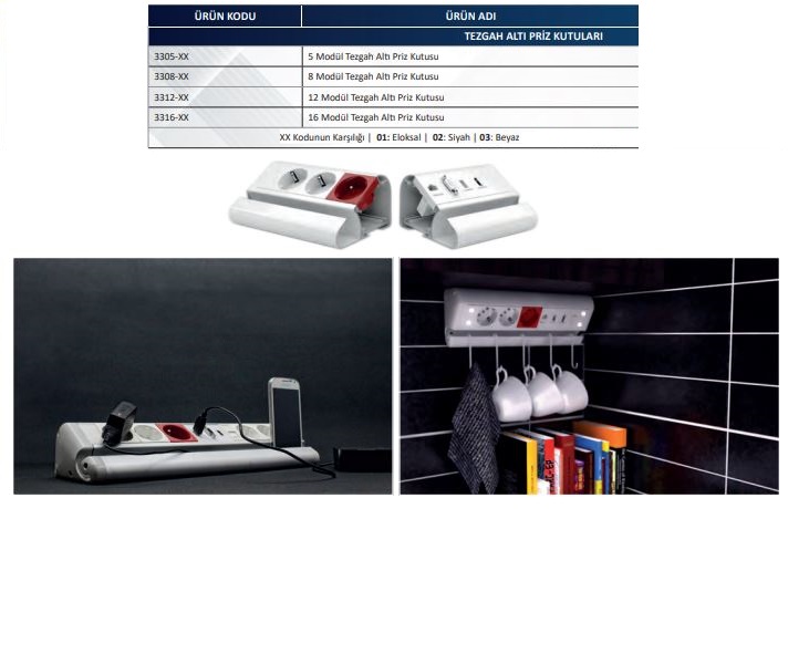 NE-AD 3312-03 12 Modül Tezgah Altı Priz kutusu (Renk-Beyaz)