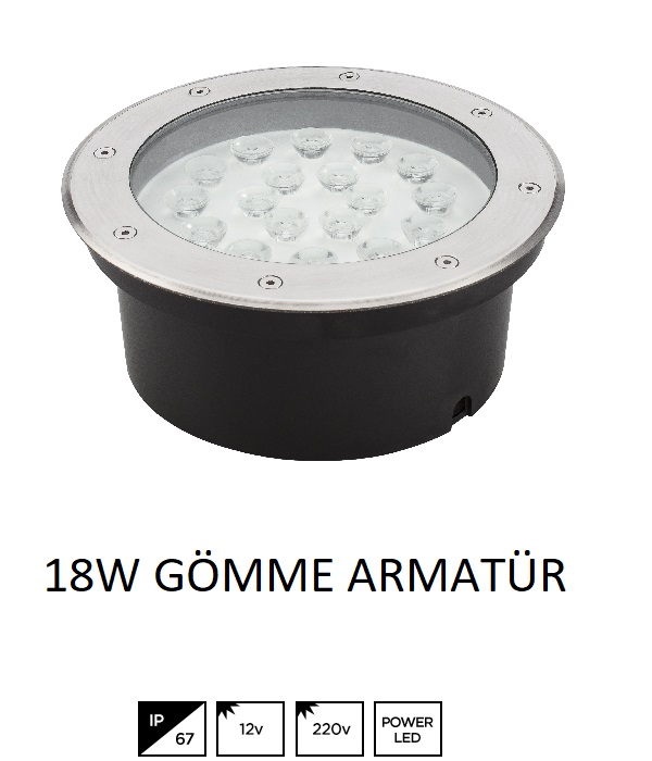 18W Bahçe Havuz Kanopi Gömme Armatür Beyaz Işık
