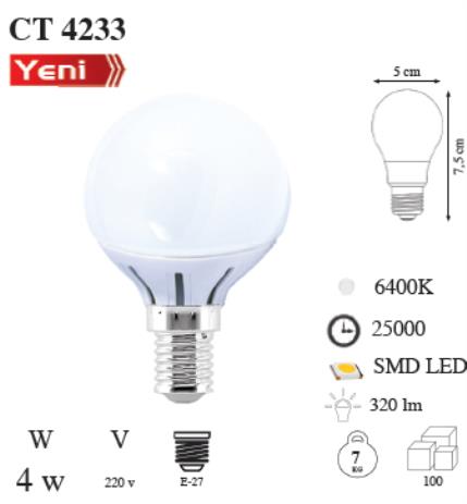 CATA 4W Led Ampul (E-14) (Beyaz Işık) (CT-4233)