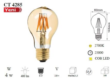 CATA 4W Led Filament Ampul E27 Duy(Amber) (CT-4285)