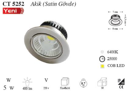 CATA 5W Akik Cob Led Armatür (Saten Kasa)(Beyaz Işık) (CT-5252)