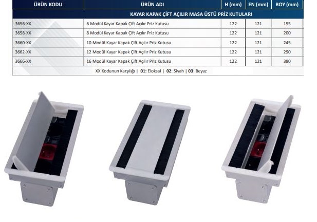 - 6 Modül Kayar Kapak Çift Açılır Priz Kutusu (Renk-Siyah)