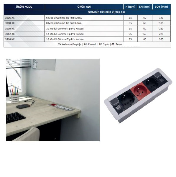- 8 Modül Gömme Tip Priz Kutusu (Renk-Siyah)
