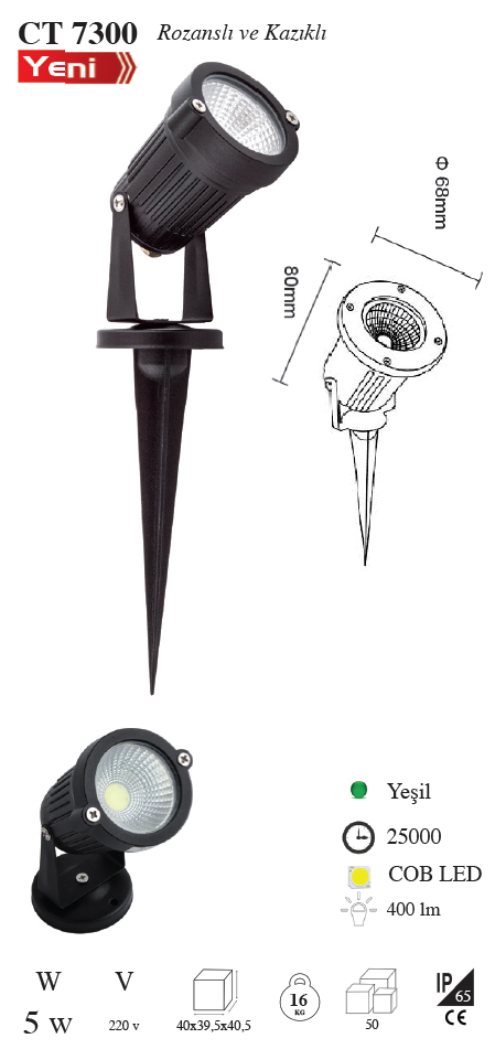 - Ct-7300 Bahçe Armatürü (Yeşil Işık)