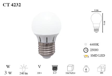 CATA Edison Led Ampul (3W)(Beyaz Işık) (CT-4232)