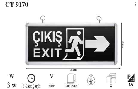 CATA EXIT ÇIKIŞ ARMATÜRÜ LEDLİ 3 SAAT AKÜLÜ (CT-9170