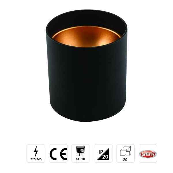 - Foça Sıva Üstü Dekoratif Armatür Siyah-Gold Kasa