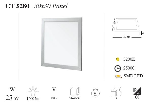 CATA LedPanel(30X30)25W(Beyaz Işık) (CT-5280)