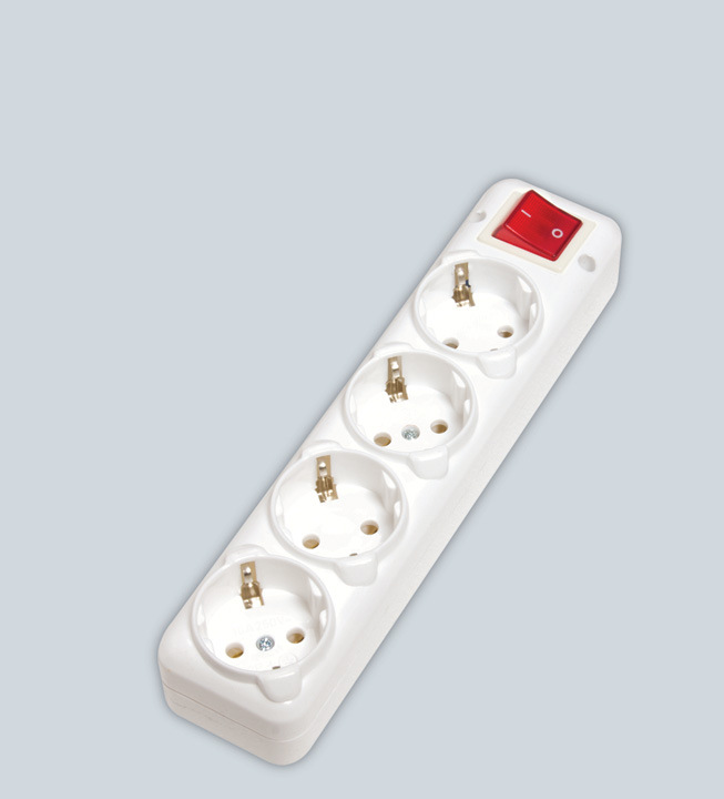 - 4 lü Topraklı Anahtarlı Priz Klemensi Grup Prizler (Beyaz)
