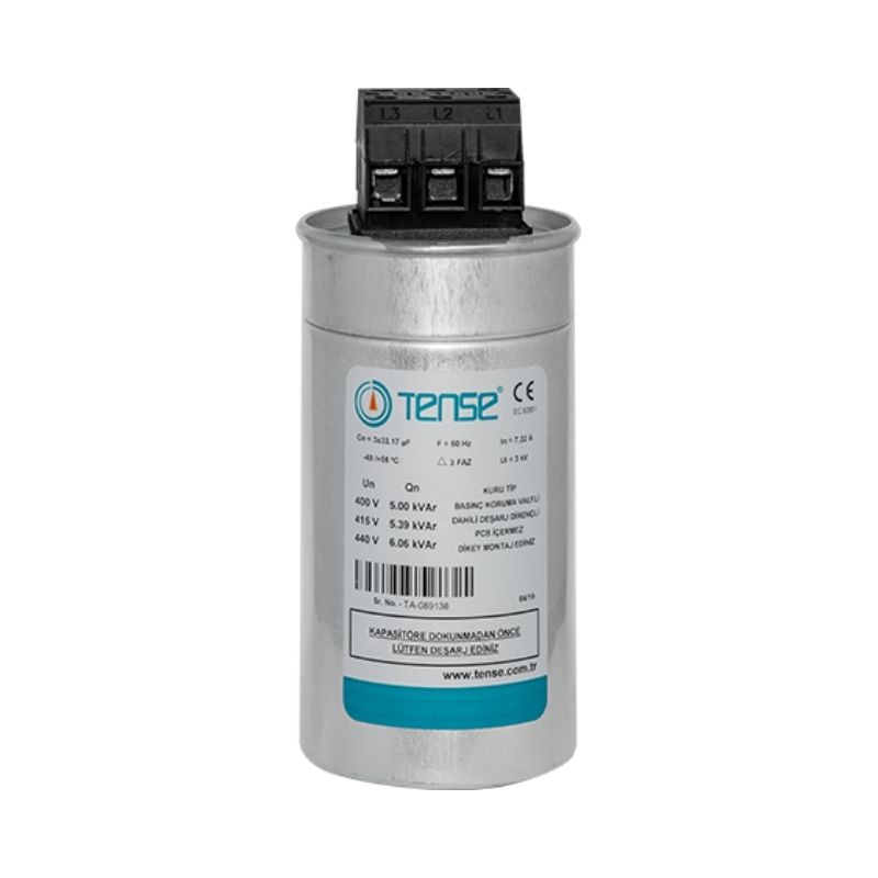- TTK-5 5kVAr 400V Trifaze Güç Kondansatörü |Trifaze Kompanzasyon Kondansatörü